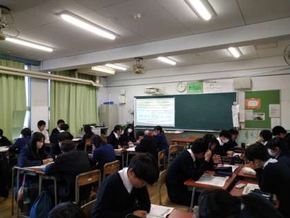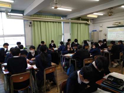 2年生は、総合的読解力育成カリキュラムに取り組みました。今回が5回目です。班での意見交流が活発に行われていました。意欲的に取り組んでいます、77期生!