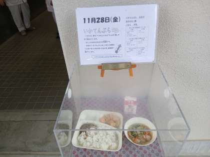 また、噛み応えのあるのが特徴です。今日の「いかてんぷら」は、いかに小麦粉とでん粉で作った衣が付いたものを、給食室で揚げています。