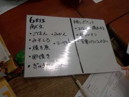 生徒のみなさんが、班でどのような朝食が良いのかを話し合いました。みんな一所懸命に授業に参加している姿が印象的でした。先生も工夫された教材で、授業が展開されていました。食育が授業の中で展開されていました!