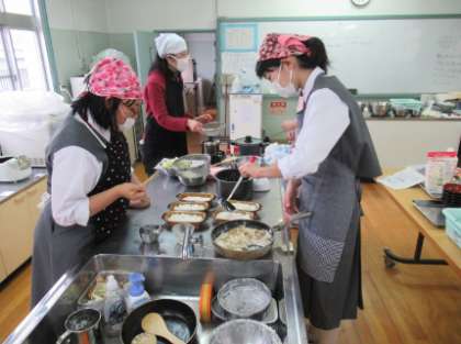 本日午後から家庭科部では調理実習を行いました。さて、何ができるのでしょうか? -