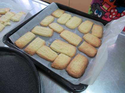英語部では、本日、調理室でクッキー作りを行いました。バターをハンドミキサーで溶き混ぜるのが、なかなか難しそうでした。↑こんがり焼き上がったクッキー