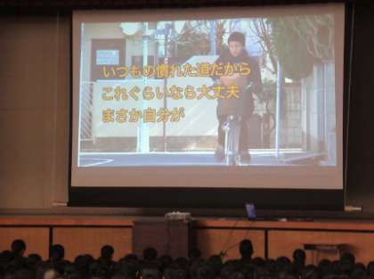 2学期の終業式を行いました。1限に体育館で全校生徒が集合し、最初に「自転車事故が多発する中学生の時期にぜひ知っておいてもらいたいこと」というテーマに、スマホしながら運転することの危険性を科学的に説明したビデオを鑑賞しました。年末年始の慌ただしい時期に事故を防ぐ意味からも十分理解してほしい内容でした。安全な冬休みを過ごしてください。 -