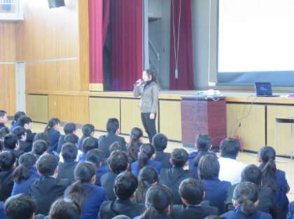 2学期の締めくくりとして、本日は、1限1年生、2限2年生、3限3年生と順番に学年集会を体育館で行いました。各学年とも、2学期の振り返りと3学期に向けての準備、冬休みの生活についての話がありました。