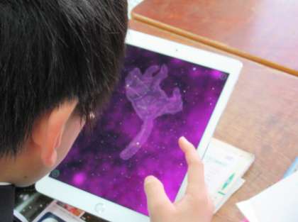 現在、3年生の理科の授業では、天体についての学習に取り組んでいます。本日は、昼間にもかかわらず、iPadを使って大空の向こうにある惑星や地球の裏側にある星などを探し、星座や太陽系の星を全てスクリーンショットして写真として保存し、それぞれの星の特徴をレポートしていました。ITC端末を活用しなければ、可能とならない授業でした、すごく興味のある楽しい観察でした。 -