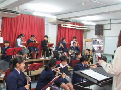 入学前の6年生を対象に行っている部活動体験。夏休みから各部活ごとに日程を設定し、実施してきましたが、本日は吹奏楽部で体験が行われました。各パート別に分かれて1・2年生が楽器の演奏の仕方を伝え、最後には音楽室で全体合奏を行いました。小学校6年生のみなさん、是非、何かの部活動に入って、自分自身も能力を磨いてください。 -