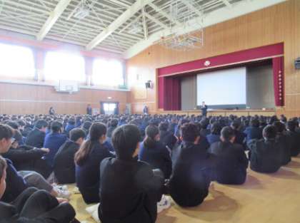 定例の全校集会を体育館で行いました。明日から12月10日までの人権週間に合わせて、学校生活を点検し、お互いの尊厳が守られているかどうかについて、身近なところで一人一人が確認し、過ごしやすい学級、学校づくりに努めましょう。