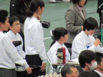 25日から始まった全国都道府県対抗中学バレーボール大会で本校の放送部が開会式や本日行われた男女決勝戦の場内アナウンス、閉会式の進行アナウンスで頑張りました。全国大会という晴れの舞台でアナウンスするだけに、とても緊張した様子でした。少しドギマギしたところもありましたが、この貴重な体験を是非次のステップに活かしてください。