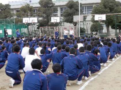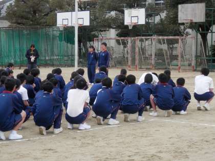 ラグビー選手には放課後の部活動まで参加し、ご指導いただきました。