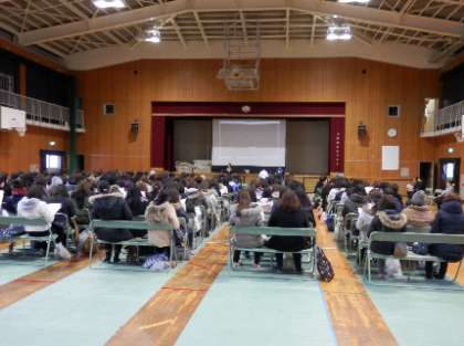 昨日、インフルエンザや天候等によってできなかった全校集会を3週間ぶりに行いました。3年生の卒業式までちょうど後1ヶ月、私立入試の結果が出てくる中で、決して気を緩めることなく、仲間全員が自分の希望する進路を獲得できるように最後まで協力して励まし合い、努力しましょう。お互いへの感謝の気持ちを込めて!