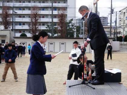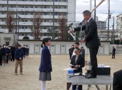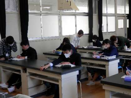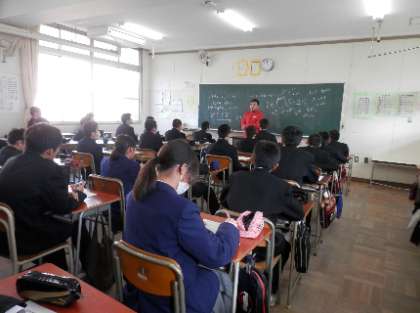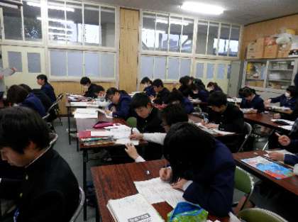 3年生の希望者を対象に実施してきた土曜自主学習会が本日で終了しました。11月から始まった学習会でしたが、全11回実施することができました。今日は、最終日ということで、受講生一人ひとりからボランティアの学生へお礼の言葉を述べました。大学生側からは、「先にある公立の一般選抜検定の突破を祈っています」と励ましの言葉をいただきました。来年度も同じような取り組みを企画したいと考えています。 -