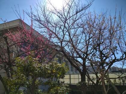 春の陽気に誘われ、中庭の梅もたくさん開花しました。その横で、桜の木にはいくつかの蕾が見られました。みなさんも次のステージで「花」を咲かせられるように、今しっかりと準備してくださいね。 -