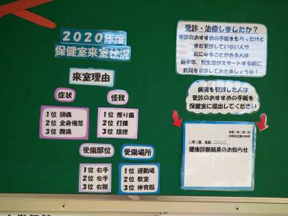 早期発見、早期治療が大切です。治療が終われば、保健室に連絡をお願いします。 -