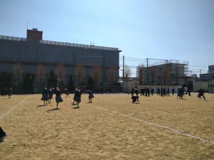 今日はとても寒い一日でしたが、昼休みのグラウンドは賑わっていました。