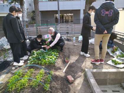 ぽかぽか陽気の中、菫中菜園で第2弾の収穫が行われました。