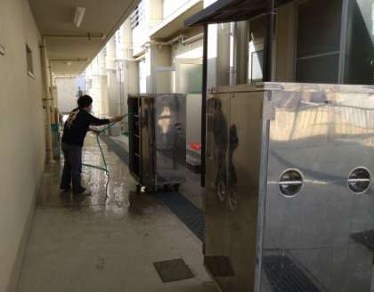 本日は、早朝より給食調理員さんが、給食棟内外の大掃除をされておられました。今年度、おいしい給食を提供していただき、ありがとうございました。