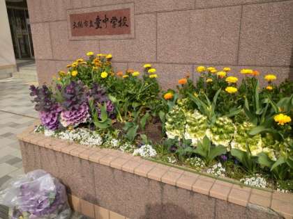 正門の花壇には、いつもきれいなお花が植えられ、登下校を見守ってくれています。このお花を花フレンズのみなさんが、毎朝の水やりや雑草を抜いてくださっています。昨日は、花フレンズの方々が、入学式に向け、花壇のお手入れをしてくださいました。いつもありがとうございます。次も、どんな素敵なお花に出会えるのか楽しみにしております。