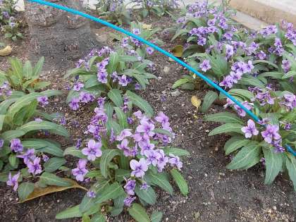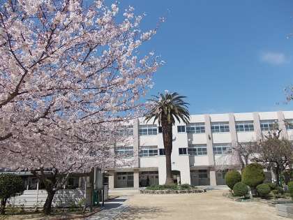 校庭では菫中学校にふさわしく、菫が咲き誇っています。