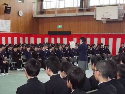 特に2・3年生で空席が見かけられたかと思います。これは、本日が、公式戦という部活動が多くあったためです。この場合、学校の授業は「公式戦参加」という形で「公欠」扱いとなり、出席扱いとなります。それぞれの部が活躍してくれることを祈っています。