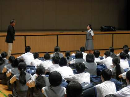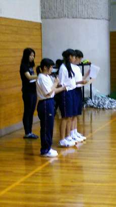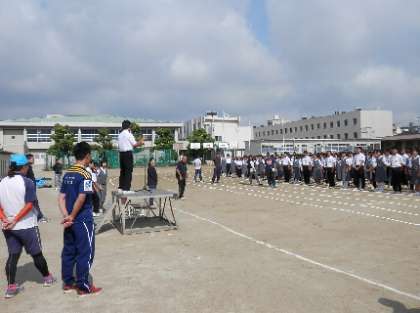 保健委員会の生徒代表から、熱中症に対する予防、対策等について話がありました。 -