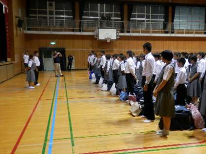 最後は、係生徒の代表から修学旅行を締めくくる言葉がありました。解散したのは、午後8時15分過ぎになりましたが、たくさんの保護者のみなさんがお迎えに来ていただきました。本当にありがとうございました。たくさんの「おみやげ話」をご家庭で聴いてあげてください。
