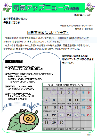 6月より水曜日の昼休みと月曜日から金曜日までの放課後、図書館を開館いたします。