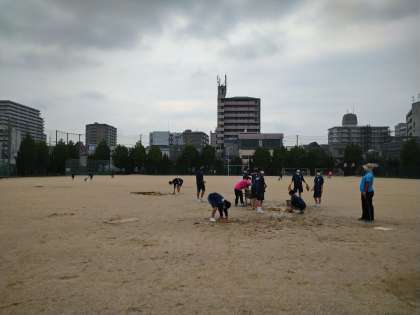 グラウンド整備、ライン引き等々、本当に手際よく行動ができています。
