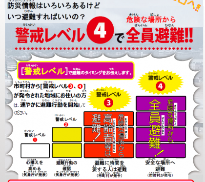 災害時には気象情報にも十分ご注意いただき、迅速にご対応いだけるよう万全の備えをお願いします。