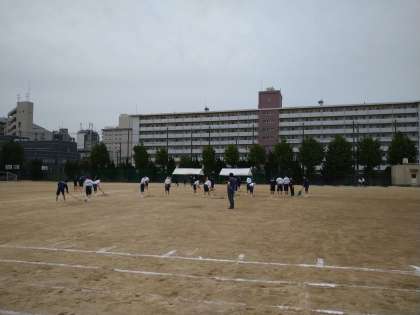 本日、午後からグラウンドでは,サッカー部の練習が行われていました。