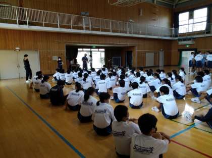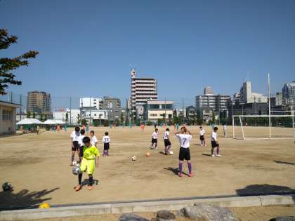 本校のみなさんは、場所等限られた中ですが、とてもいい雰囲気で練習をしていました。カメラを向けると、リフティングを披露してくれました。ありがとうございました。 -
