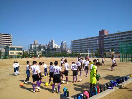 午後からは、サッカー部の姿がありました。グラウンドでは大会中の他校の試合が行われていました。