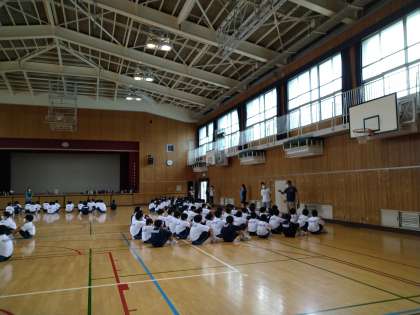 2年生も体育館での練習となり、レース・コースの確認をしました。