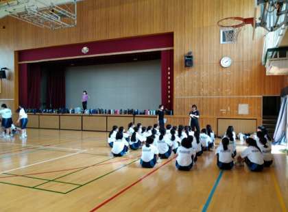 6限目の総合で2年生は、体育大会の全員リレーの入退場の確認をしました。