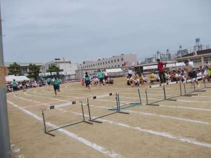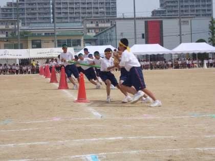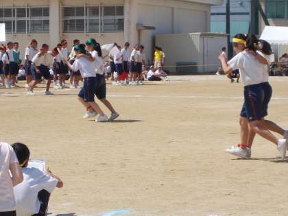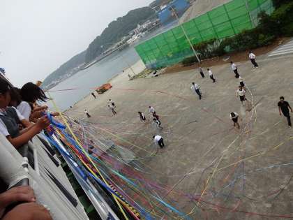 下:台風の目:1年の学年種目。よく協力できていました。 -