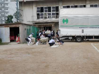 体育大会で生徒席を全部覆ったテント17張り。お隣の大阪信愛女学院からお借りしました。本日、放課後に学校までトラックで運搬しましたが、高校では、たくさんの先生方や生徒さんにお手伝いいただき片付けることができました。ありがとうございました。