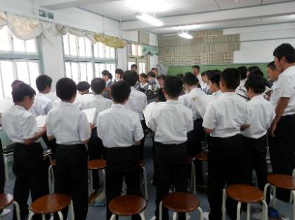 今日は、校長先生から「テスト前の学習の仕方について」と「沖縄:慰霊の日」についての話、生徒主事からは、「自転車保険の義務化」について話がありました。
