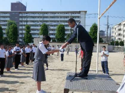 また、剣道部の生徒として、強化選手として認定された認定証の授与を行いました。そして、教育実習生から実習終了の挨拶もありました。 -
