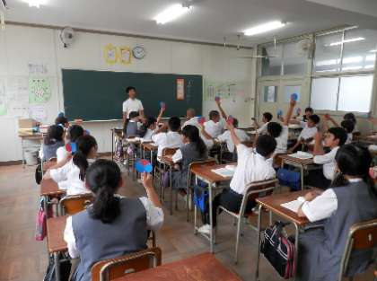 6時間目の研究授業2年4組「ぱなしの女王」は、全教員で参観しました。
