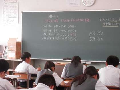 本日から期末テスト。今日は、社会・理科・技術家庭のテストでしたが、1・2年生では、4時間目にCRT検査(数学)を実施しました。