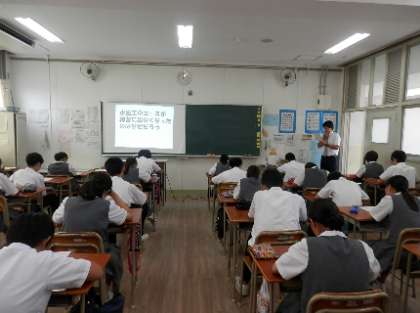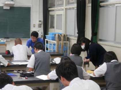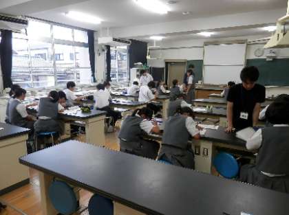 3年生の希望者(27名)を対象にテスト前の自主学習会を午後4時から2時間行いました。大学生の学習ボランティアが7名入り、理数糸と文化系に別れてテスト勉強に自主的に取り組む中で、わからないところを手を挙げて質問していました。この学習会は、明日も継続して行われます。 -