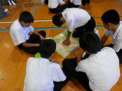 2年生では、「あっぱくん」を使って心臓マッサージのポイントを掴む体験学習を行いました。