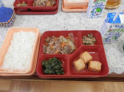 城東区長さんが来校され、給食の配膳の様子を見学した後、給食の試食をされました。
