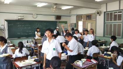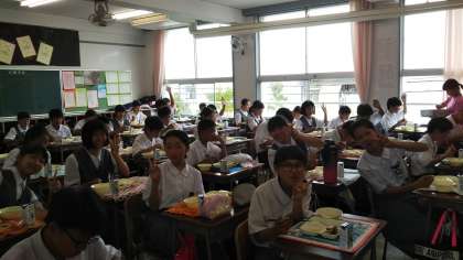 今からいただきます!のクラスもあれば、配膳中のクラスもありました。