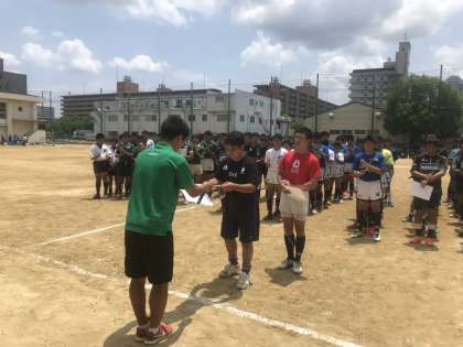 一昨日に開催された大阪市春季総体で優勝したサッカー部の表彰がありました。