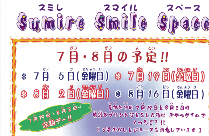 7月・8月のSumire Smile Spaceの予定が参りました。ご確認ください。