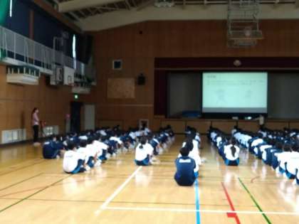 2年生の6月最後の授業は、性教育で体育館での対面授業でした。保健室の先生よりご講話いただきましたテーマは、境界線について、男女共生、異性や同性との人間関係を考えるです。社会的境界線、物理的境界線、心理的境界線等、例題を用い分かり易く説明いただきました。。ありがとうございました。