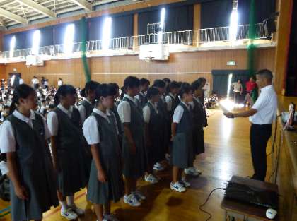 終業式の前に、防災学習の一つとして、「水難事故に遭遇した時にどう対処すべきなのか」について考える時間をもちました。この夏、「自分の命を自分で守る」行動を実践して下さい。