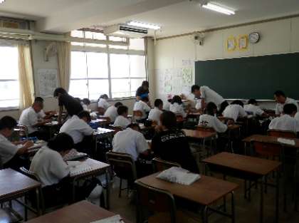 期末テスト3日目。本日は、テスト終了後の3時間目を活用して「熱中症予防講座」を実施しました。外部機関に講師の先生をお願いし、授業を受けました。今日でテストも終了。今年初めて、「蝉の声」を聴きました。これから暑くなりそうです。健康管理に十分注意した生活を心がけましょう。