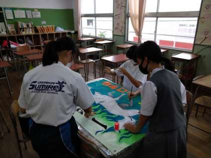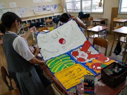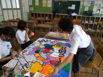 本日の放課後は、多くの学級で学級旗作成に取り組んでいました。