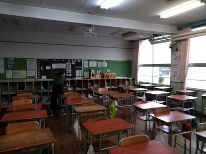 懇談会終了後は、クラス内の消毒作業を行っております。