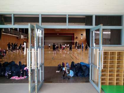 早くから集合ができている人もいますが、集合直前に体育館に駆け込んでくる人も少しいました。余裕を持って集合・整列ができるよう心がけましょう。